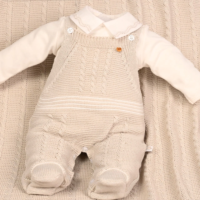 SAIDA MATERNIDADE TRICOT COM JARDINEIRA GABRIEL AREIA