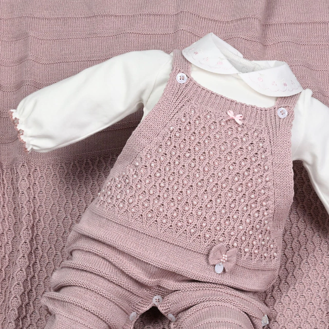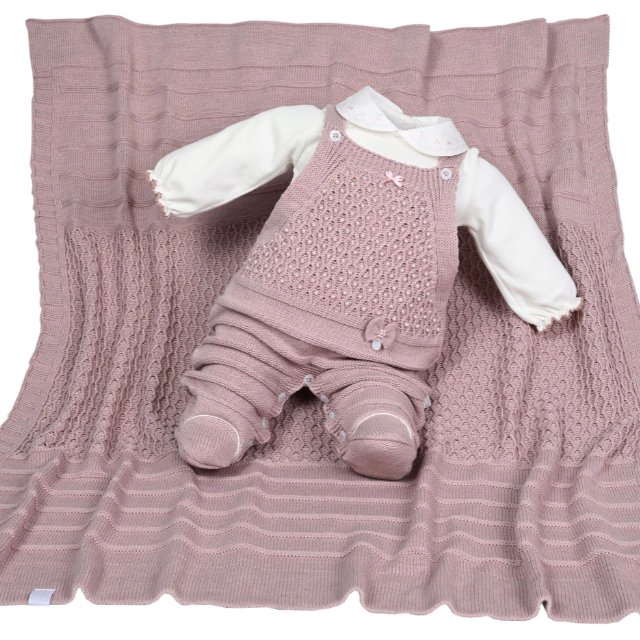 Manta de tricot em ponto trabalhado, combinando com a jardineira.