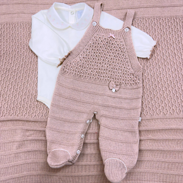 SAIDA MATERNIDADE TRICOT COM JARDINEIRA SOPHIA NUDE R$399,90