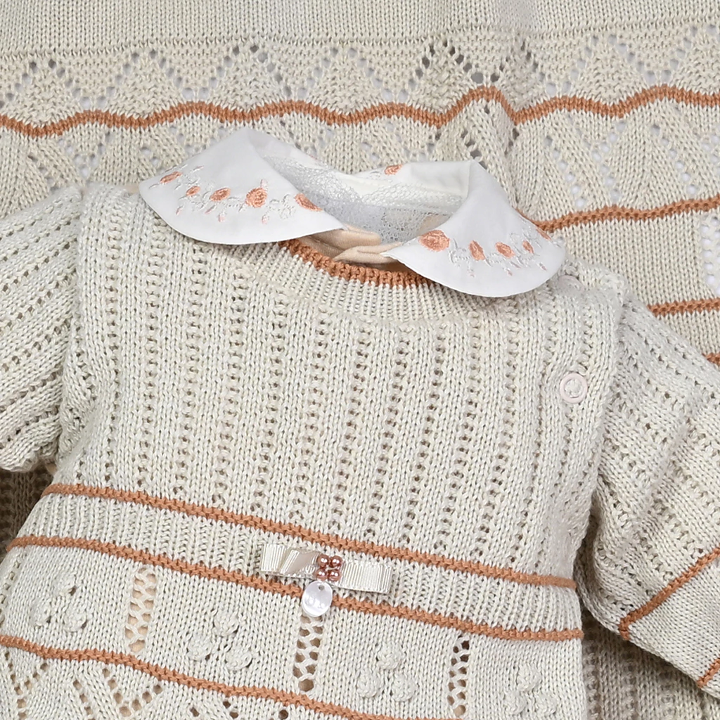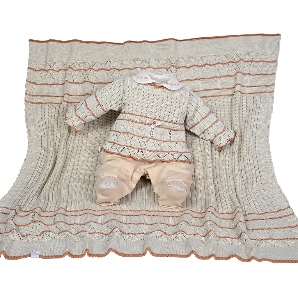 Manta de tricot em ponto trabalhado, combinando com o macacão.