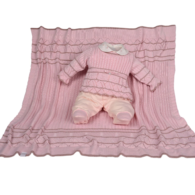 Manta de tricot em ponto trabalhado, combinando com o macacão.